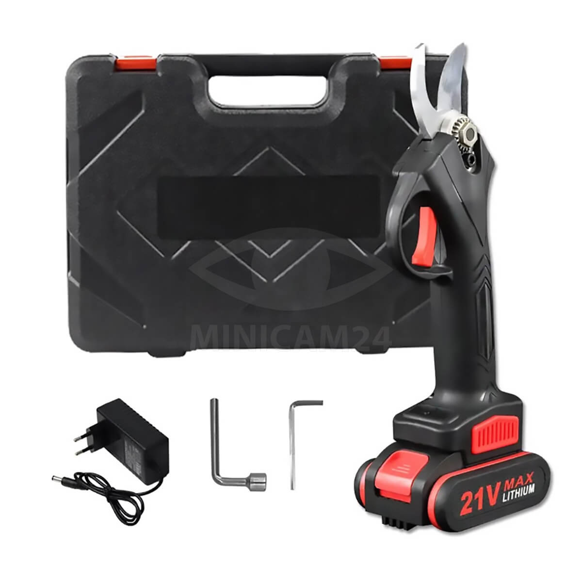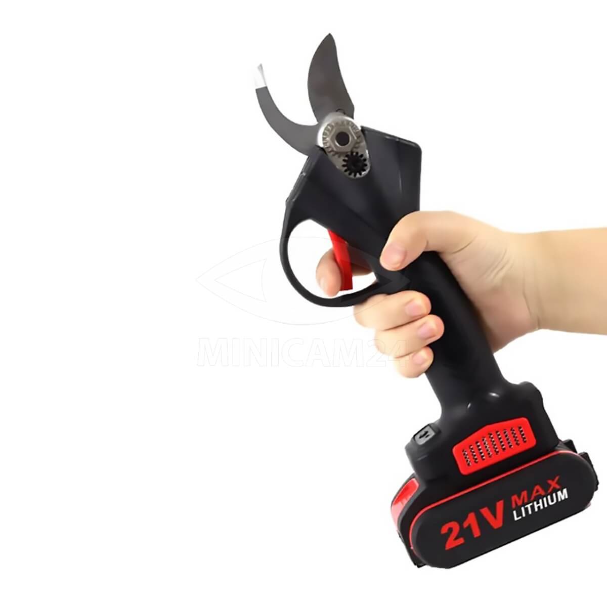Беспроводной электрический секатор Maxil (1 Аккумулятор в комплекте) для сада используется в садоводстве для обрезки деревьев, кустов. С его помощью можно следить за состоянием сада, растений и деревьев с минимальными трудовыми затратами. Ручной усиленный электросекатор на аккумуляторе отличается компактными размерами и эргономичной антискользящей рукояткой, поэтому при длительном использовании руки не устают. Ножницы садовые для деревьев отличаются от аналогов низким уровнем шума, коррозионной устойчивостью, высокой твердостью. Профессиональный аккумуляторный плоскостной сучкорез работает от одного заряда до 5 часов. Домашний электрический секатор поставляется в наборе со всеми необходимыми аксессуарами в прочном пластиковом кейсе.
